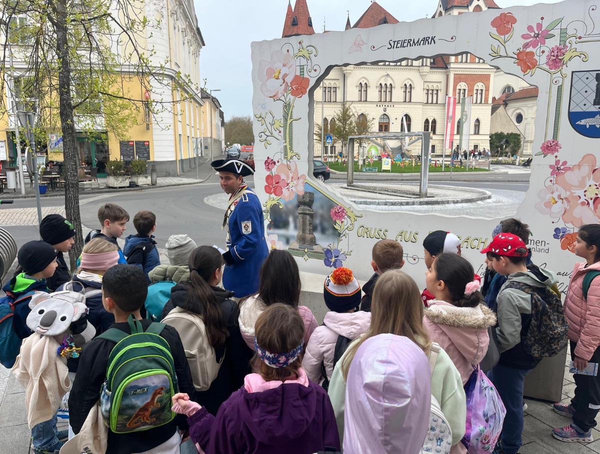 Begleitet von Vertretern der Stadtwache Feldbach machten sich die Schülerinnen und Schüler der dritten Klassen auf eine Rätseljagd. Wir suchten besondere Orte in Feldbach auf und haben das bereits Gelernte aufgefrischt. Wir danken der Stadtwache für diesen tollen Vormittag und die wunderbare Idee, spielerisch Wissen über die Heimatstadt zu erfahren.